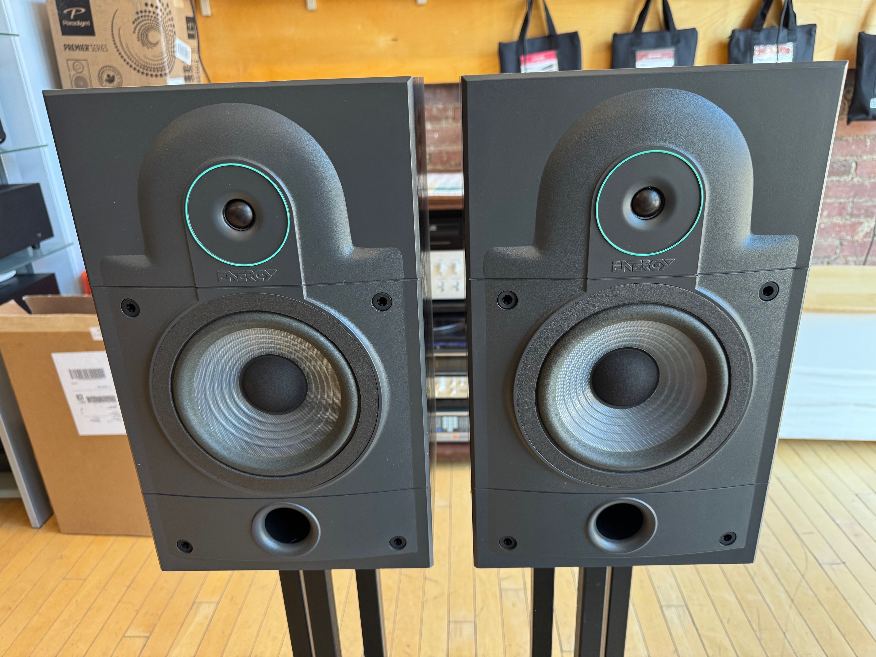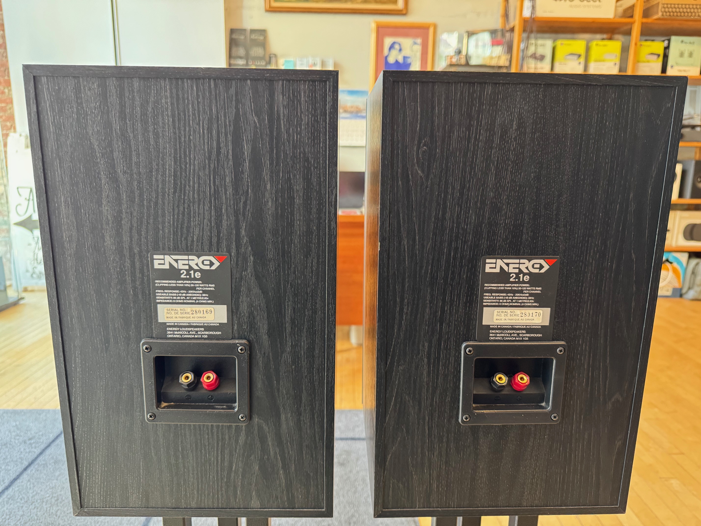 The Energy 2.1e are highly-regarded 1990s Canadian-made bookshelf speakers (6 Ohms, 120W) known for high-quality, detailed sound, often described as "super monitors". They feature a 2-way design and were designed with research from the Canadian National Research Council. They offer great value and, when in good condition, are considered excellent, durable performers.