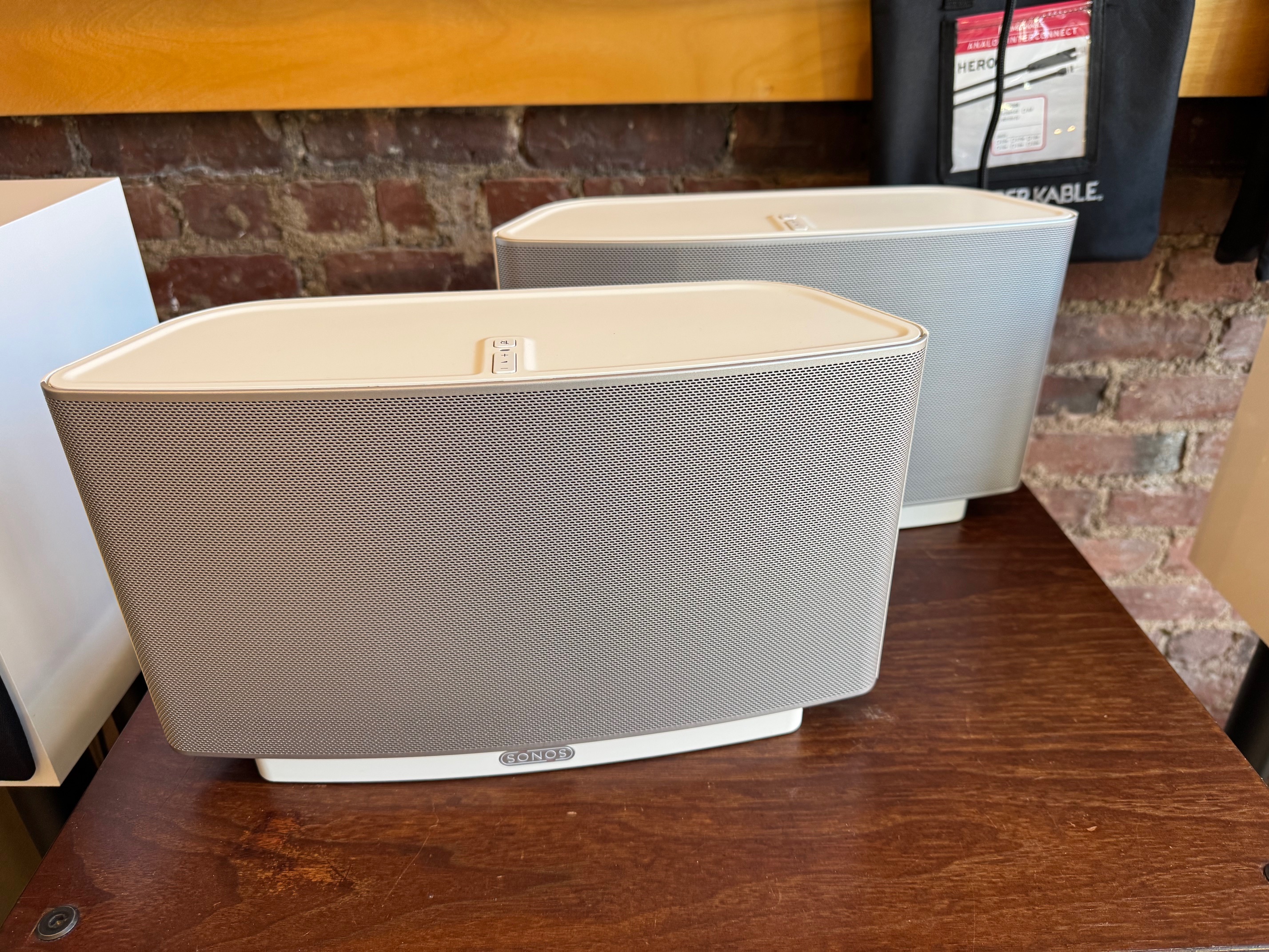 The Sonos Play:5 (Gen 1) is a legacy, high-fidelity wireless speaker introduced in 2009, known for its robust sound with five dedicated drivers, 3.5mm line-in, and headphone jack. It is restricted to the Sonos S1 Controller app and cannot be paired with newer S2-only speakers. No Airplay.